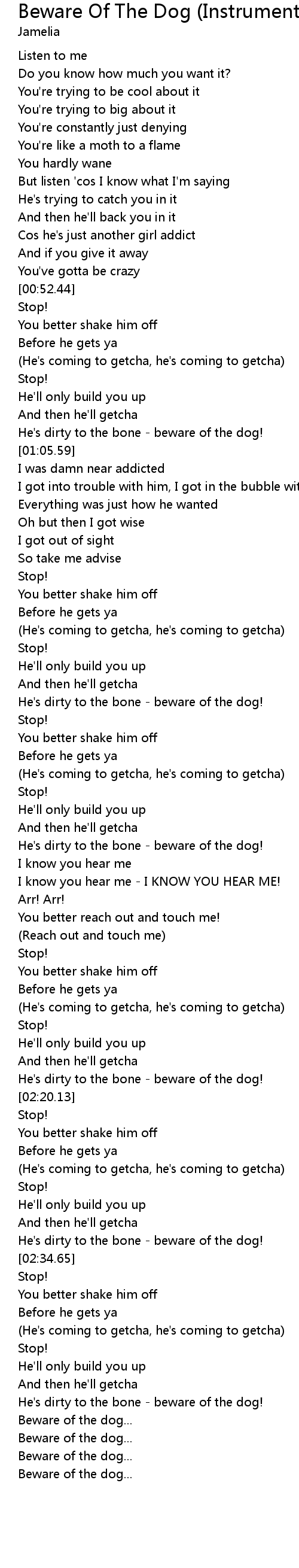 Beware Of The Dog (Instrumental) Lyrics