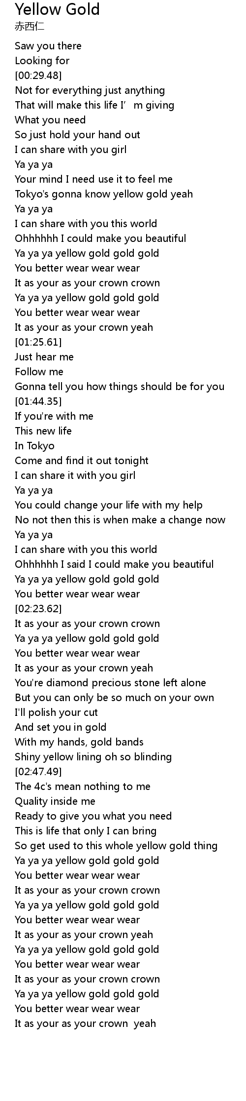 | [02:27.18] | Ya ya ya yellow gold gold gold |