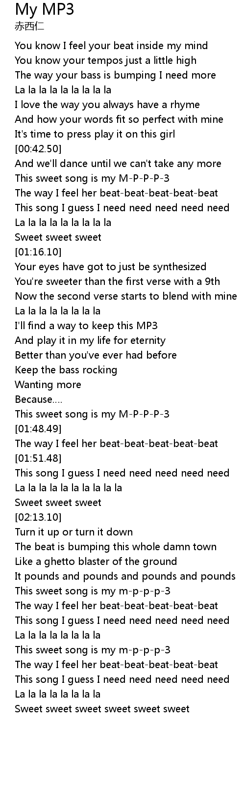 | [02:46.67] | This sweet song is my m-p-p-p-3 |