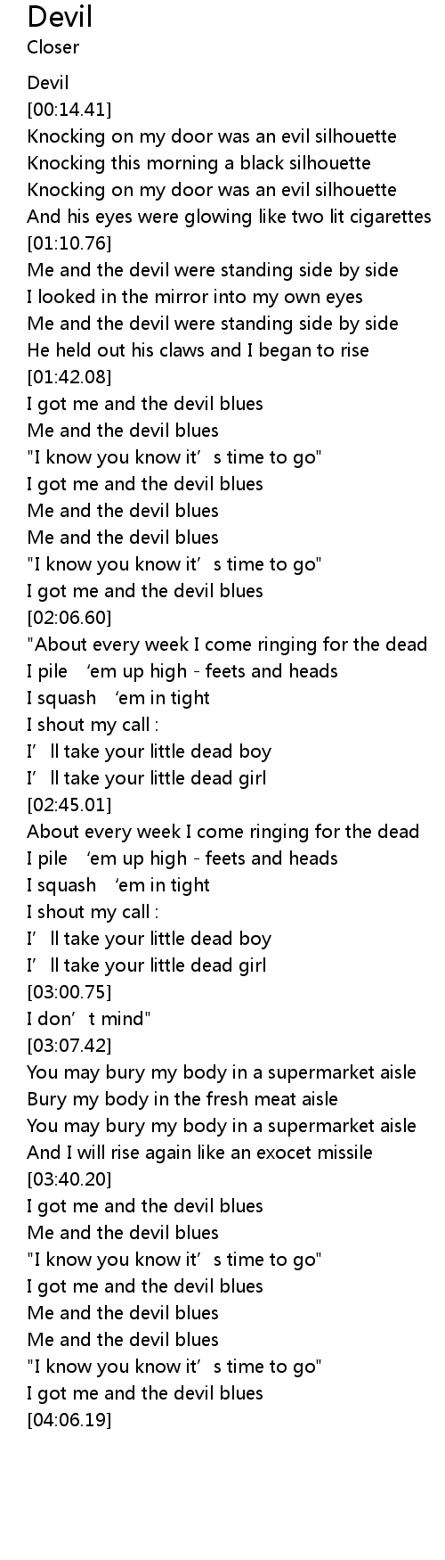 | [00:48.83] | Knocking on my door was an evil silhouette |