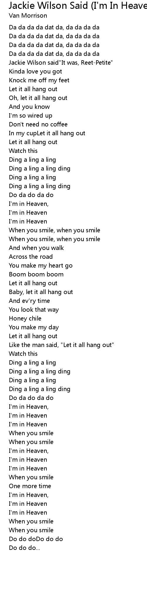 Song Jackie Wilson Said (I'm In Heaven When You Smile)