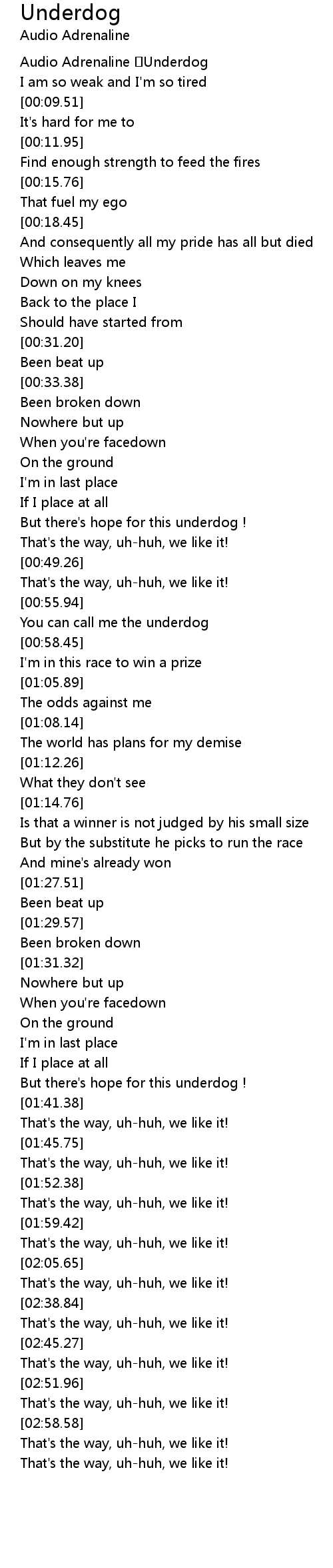 | [00:02.51] | Audio Adrenaline �Underdog |