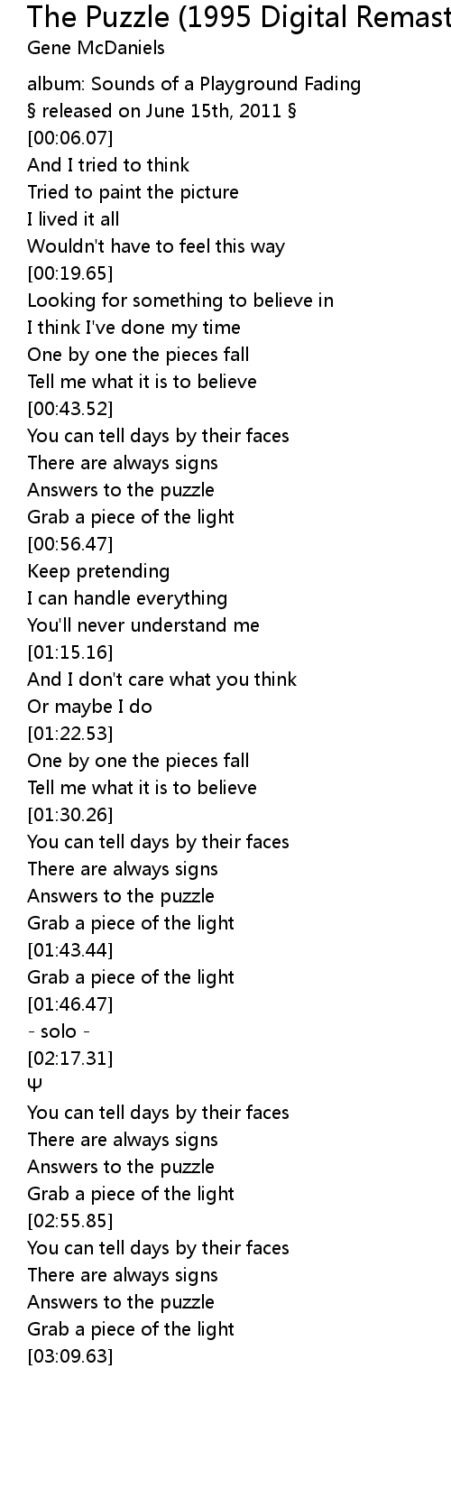 | [00:02.14] | album: Sounds of a Playground Fading |