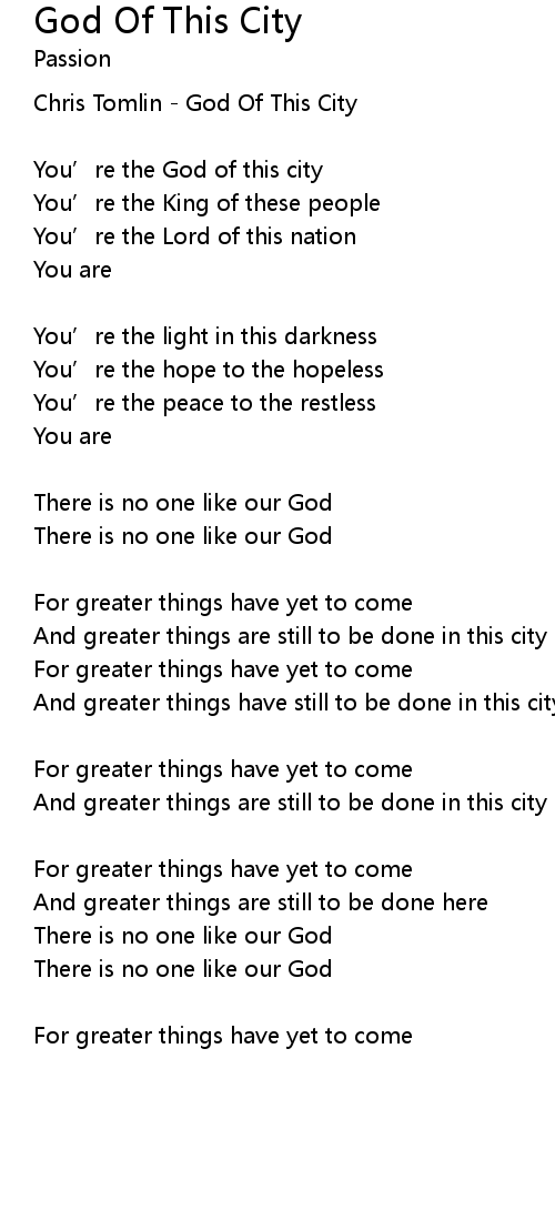 | You’re the God of this city | |