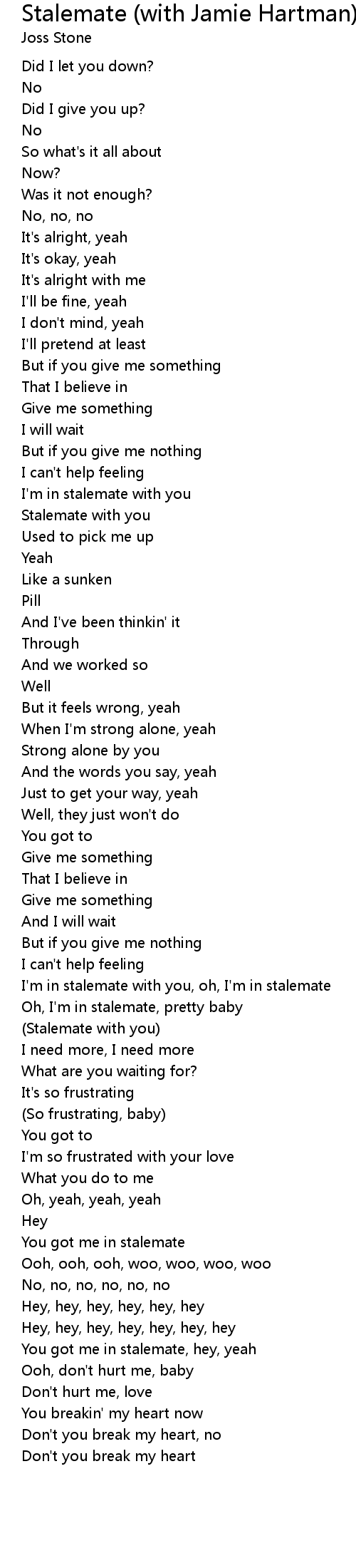 I'm in stalemate with you, oh, I'm in stalemate |