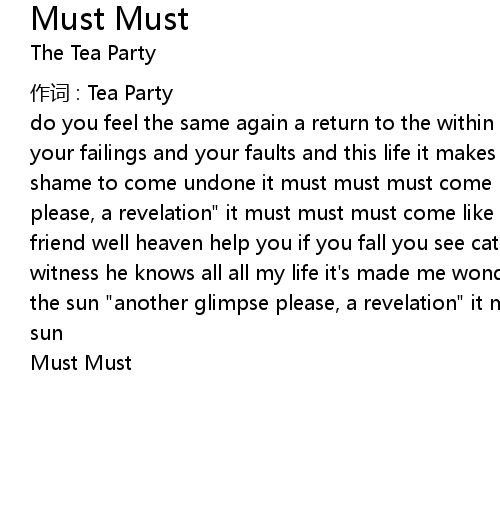| do you feel the same again a return to the within trying hard to make amends for your failings and your faults and this life it makes you wonder you feel no shame to come undone it must must must come like the sun " another glimpse please, a revelation" it must must must come like the sun so you want to be my friend well heaven help you if you fall you see catastrophically content got a witness he knows all all my life it' s made me wonder it must must must come like the sun " another glimpse please, a revelation" it must must must come like the sun | |