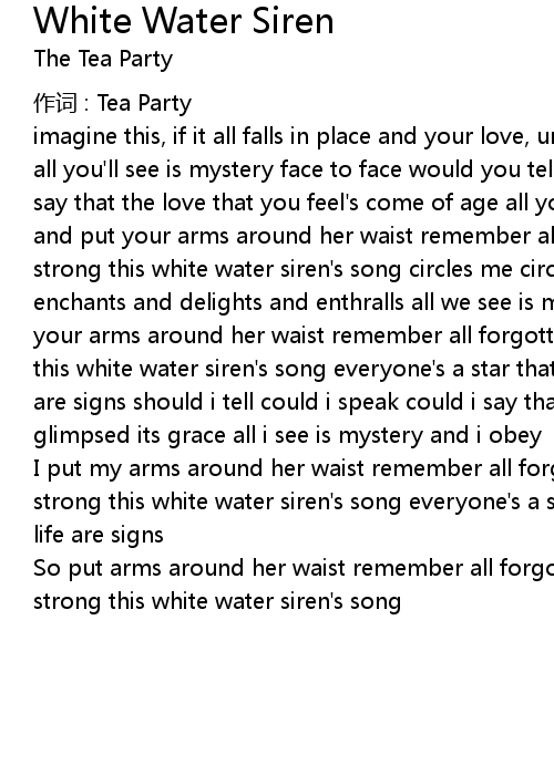 | So put arms around her waist remember all forgotten days because it' s all too strong this white water siren' s song |