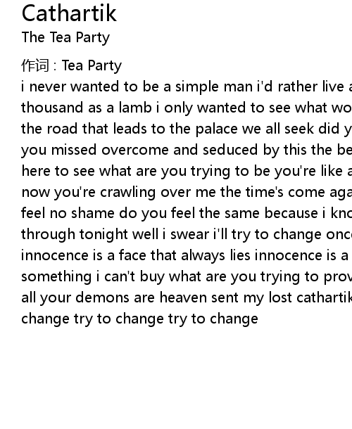 | i never wanted to be a simple man i' d rather live all my days as a lion than a thousand as a lamb i only wanted to see what would happen to me if i followed the road that leads to the palace we all seek did you come here lamenting what you missed overcome and seduced by this the beautiful abyss what did you come here to see what are you trying to be you' re like a shadow that swallows life now you' re crawling over me the time' s come again it' s nearing the end but i feel no shame do you feel the same because i know i' ll be alright if i make it through tonight well i swear i' ll try to change once again try to change innocence is a face that always lies innocence is a wish for some but it' s something i can' t buy what are you trying to prove so many mountains to move and all your demons are heaven sent my lost cathartik friend try to change try to change try to change try to change |