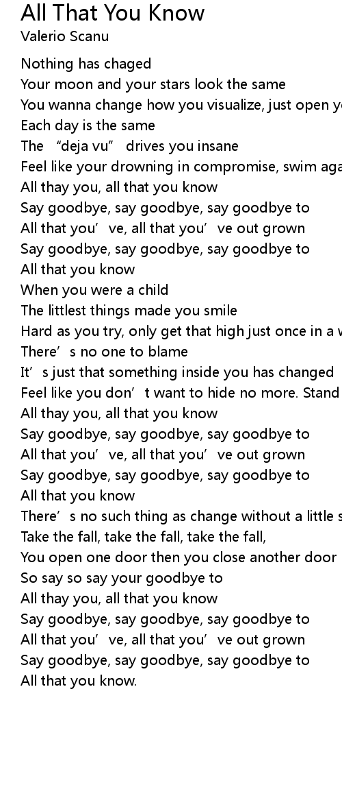 | All thay you, all that you know | |