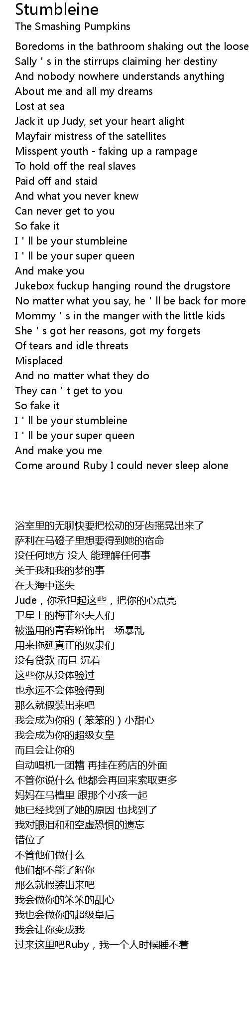 | [02:41.600] | Come around Ruby I could never sleep alone |