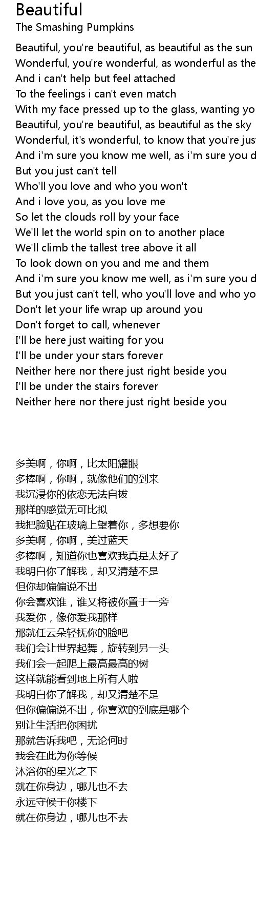 | [00:12.630] | Beautiful, you' re beautiful, as beautiful as the sun |