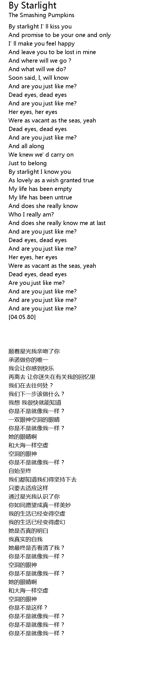| [02:21.99] | By starlight I know you |