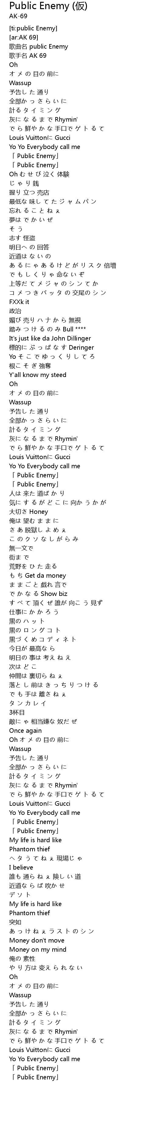 | [02:01.800] | 踏み つ け る の み Bull **** |