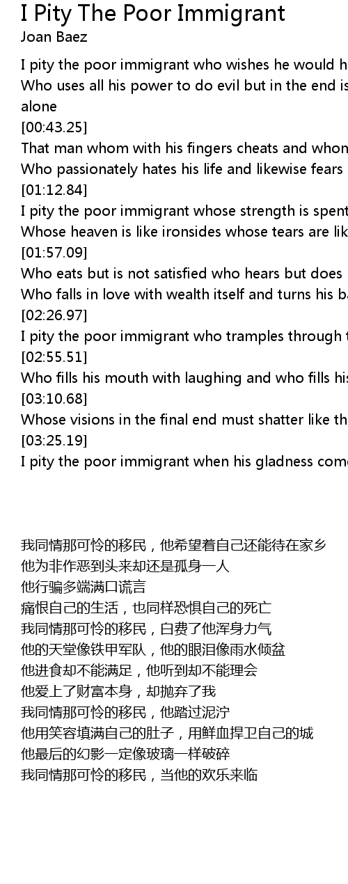 I pity the poor immigrant whose strength is spent in vain |