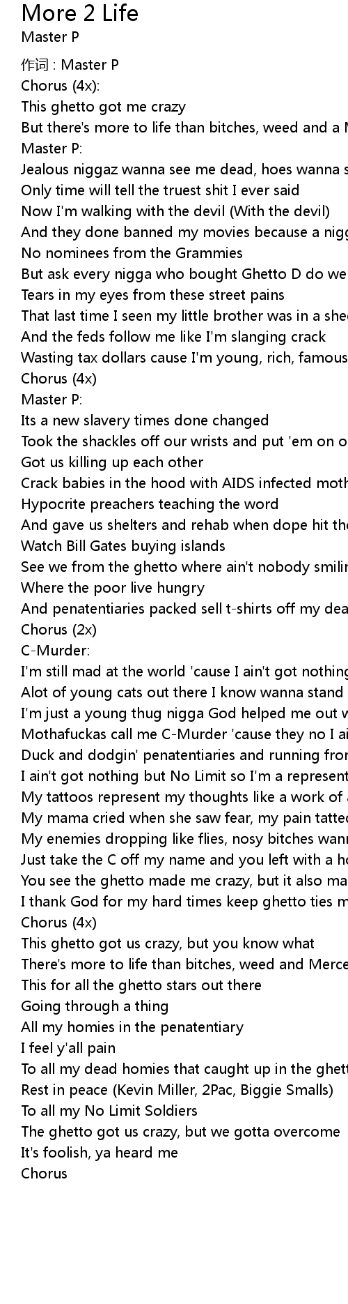 | But there' s more to life than bitches, weed and a Mercedes | |