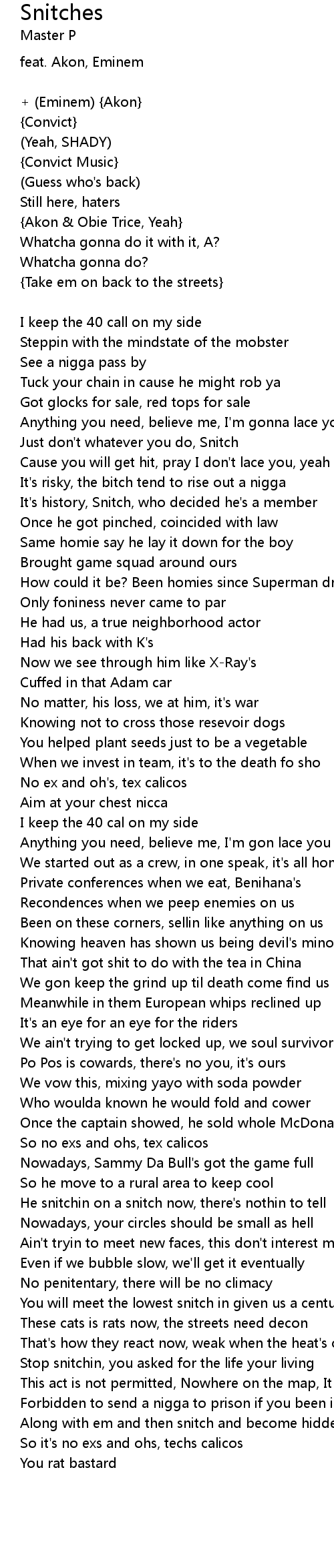 Just don't whatever you do, Snitch |