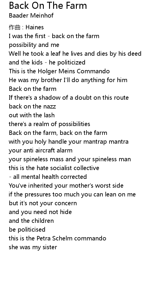 | Back on the farm, back on the farm | |