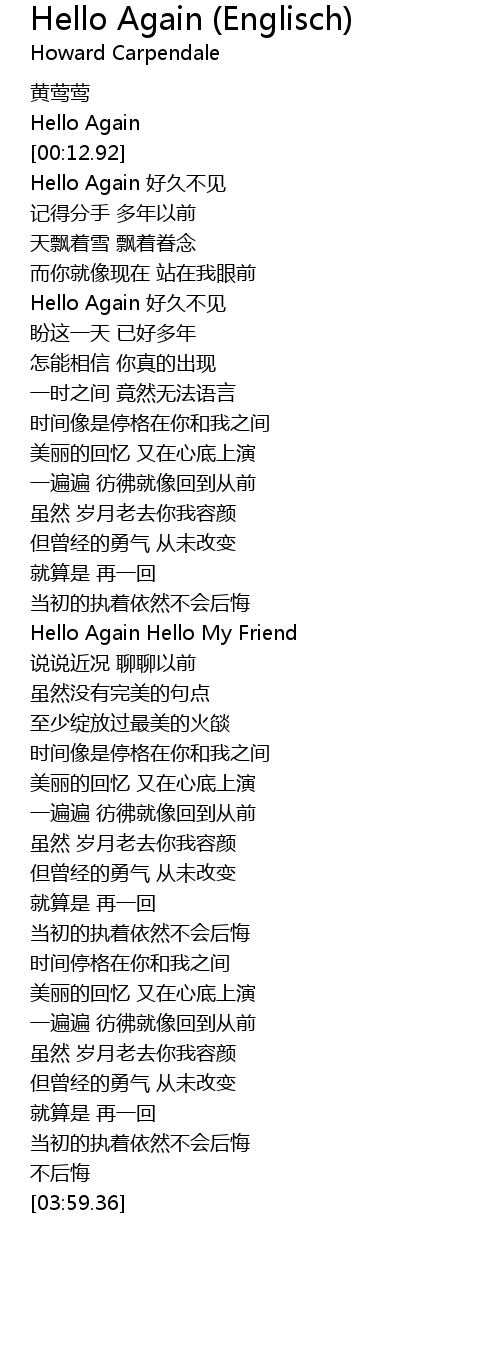 | [02:16.83] | Hello Again Hello My Friend |