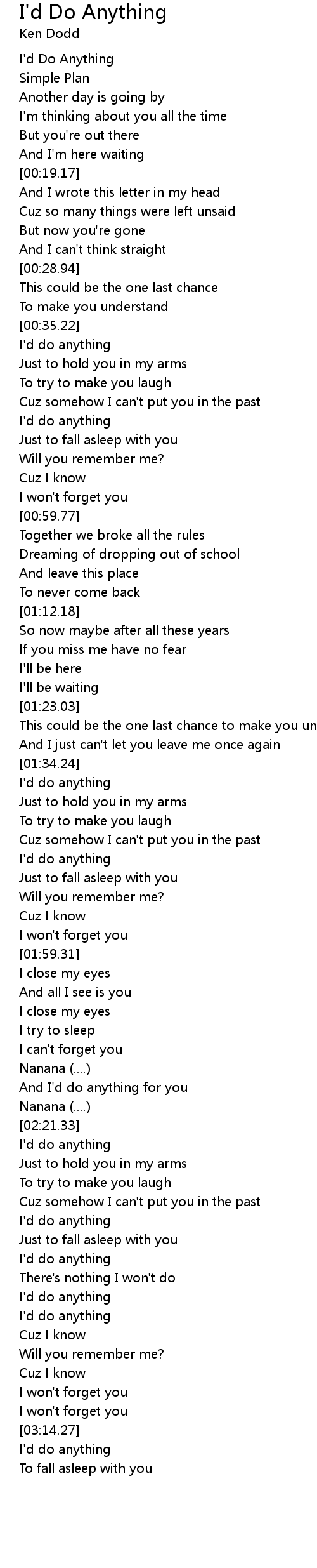 I'd Do Anything Lyrics