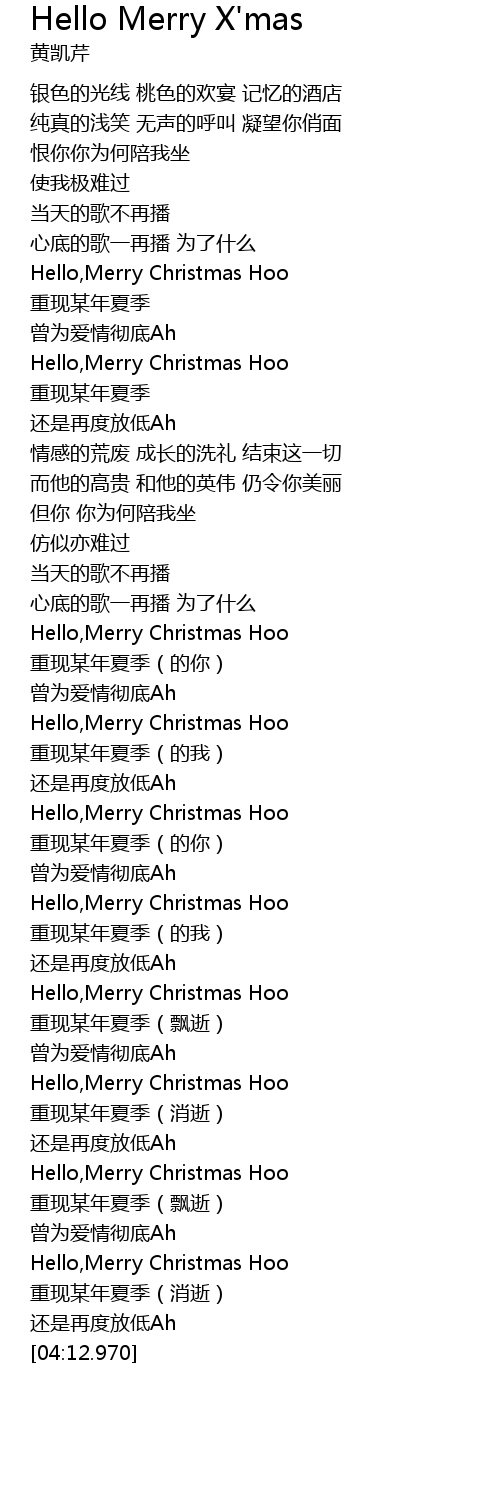 | [04:02.040] | Hello,Merry Christmas Hoo |