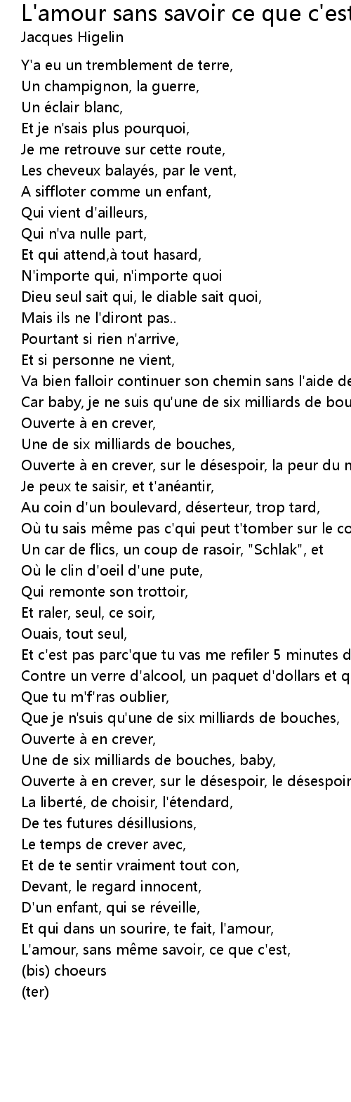 | Ou tu sais m me pas c' qui peut t' tomber sur le coin d' la gueule, | |
