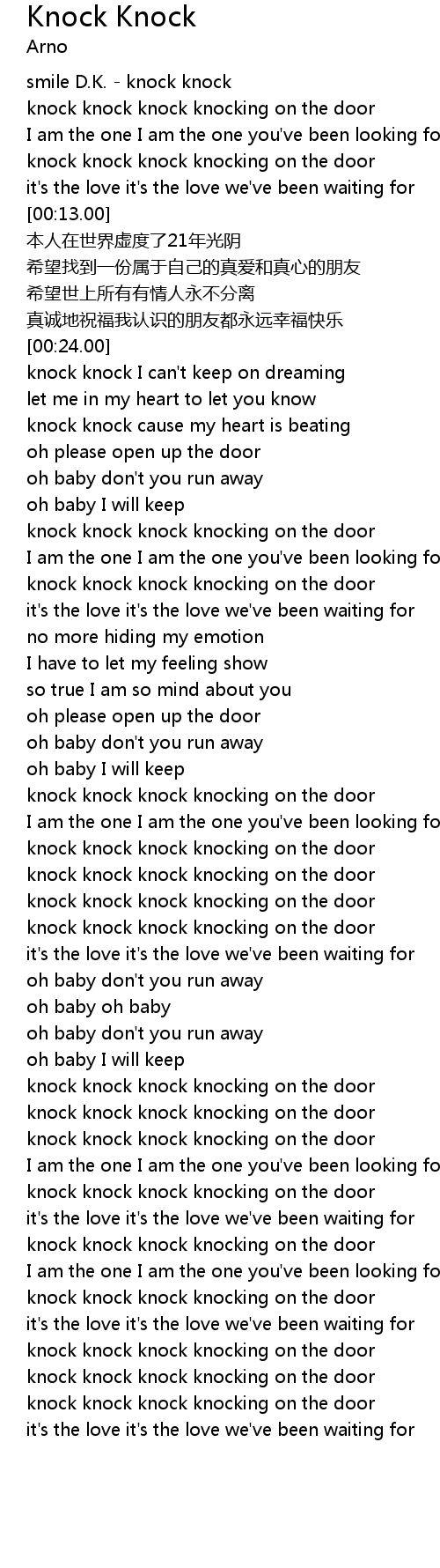 | [00:00.69] | knock knock knock knocking on the door |