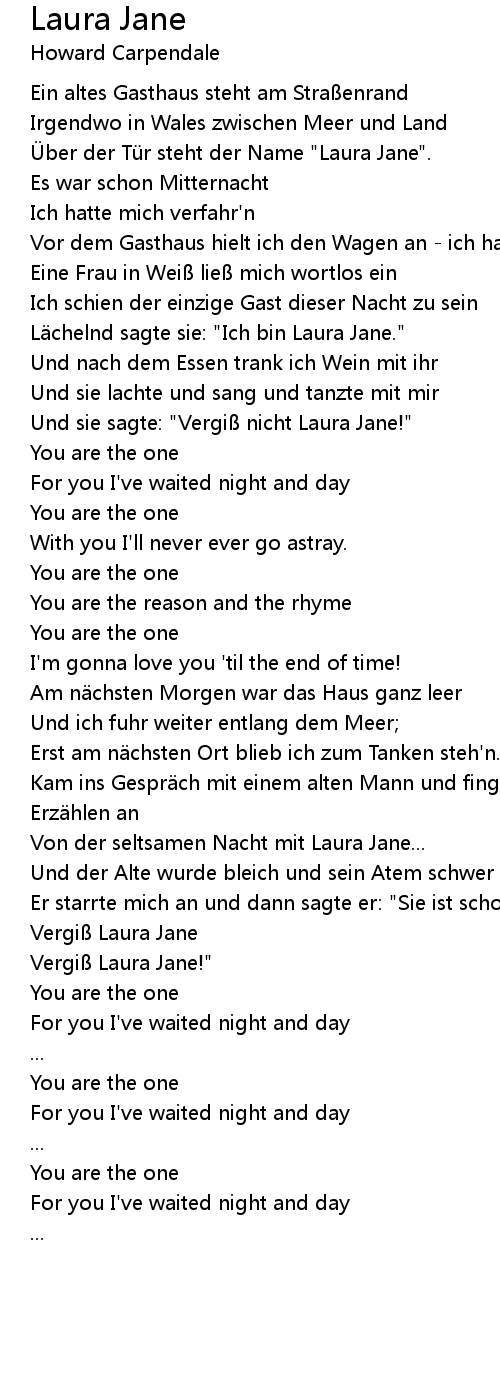 | Und sie sagte: " Vergi nicht Laura Jane!" | |