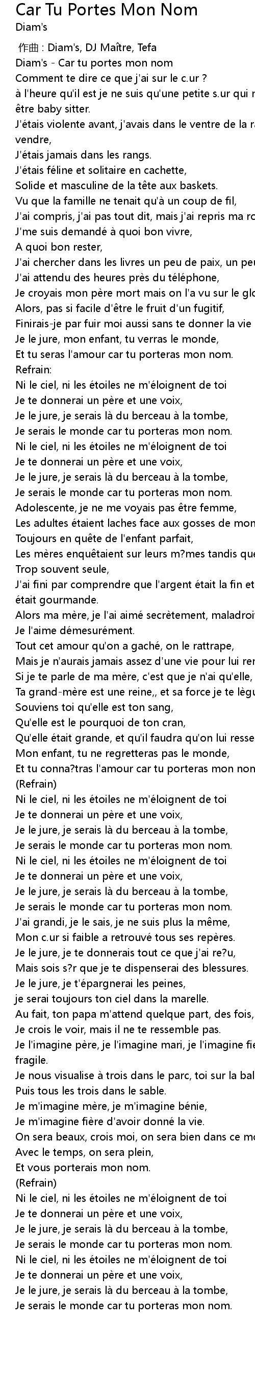 | [00:00.00] | 作曲 : Diam's, DJ Maître, Tefa |
