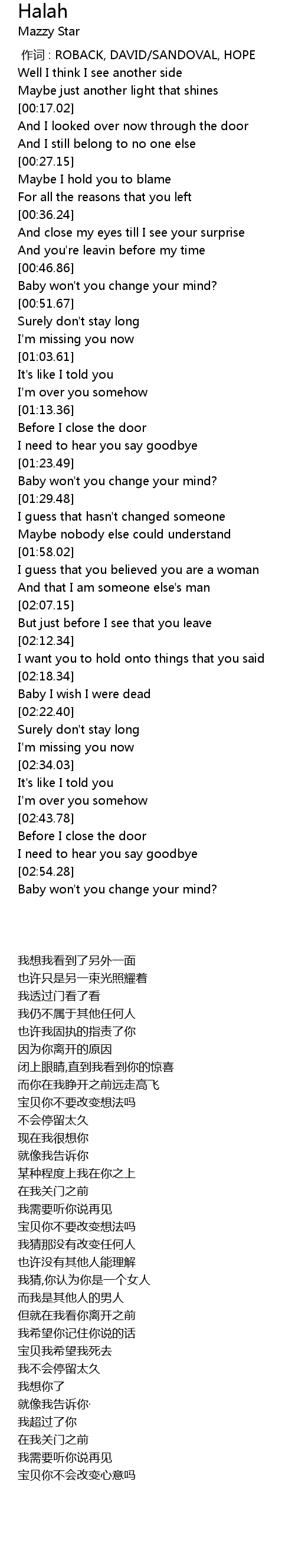 | [00:49.49] | Baby won't you change your mind? |