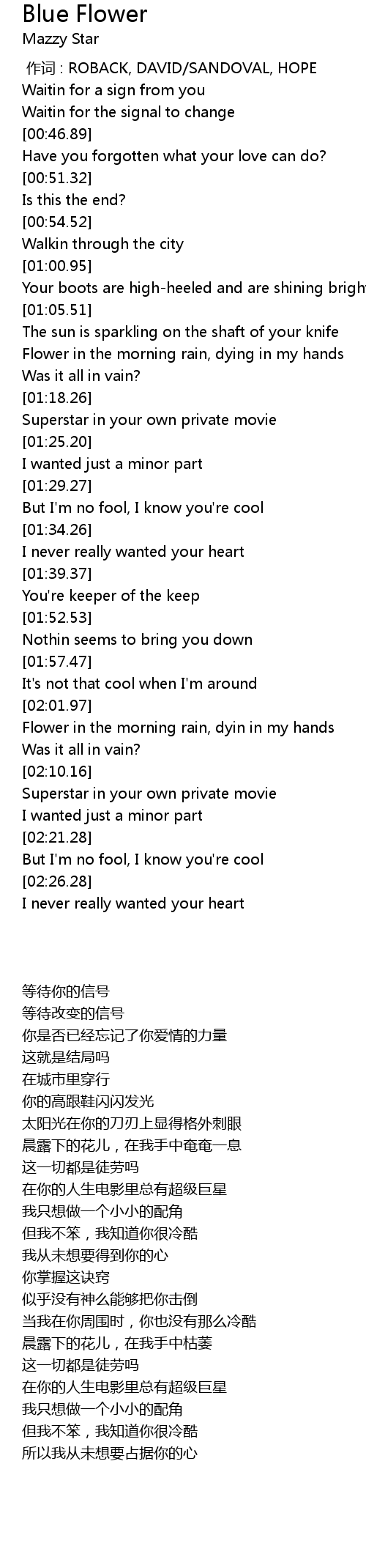 | [02:02.53] | Flower in the morning rain, dyin in my hands |