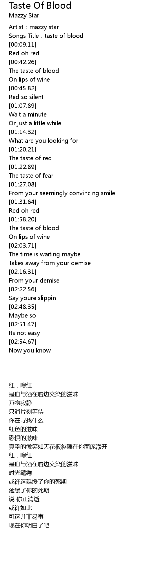 | [01:58.82] | The taste of blood |