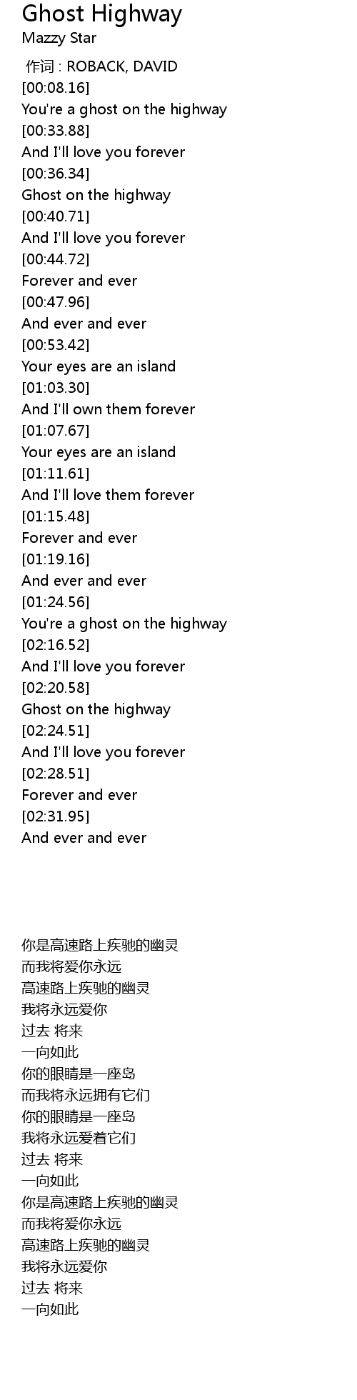 | [00:30.76] | You're a ghost on the highway |