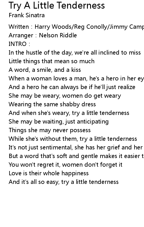 | And when she's weary, try a little tenderness | |