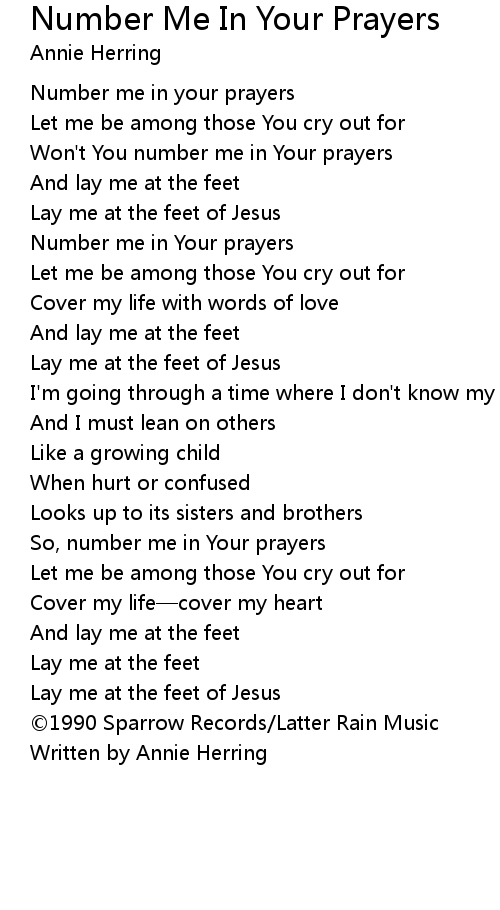 | Won' t You number me in Your prayers | |
