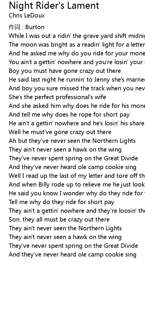 | Song | Night Rider's Lament |