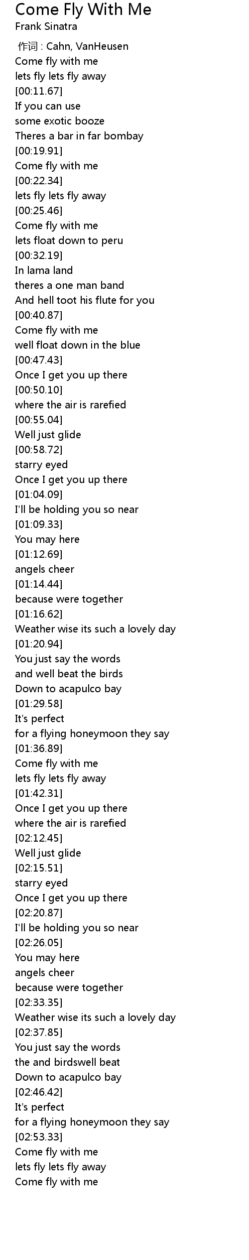 | [03:00.92] | Come fly with me |