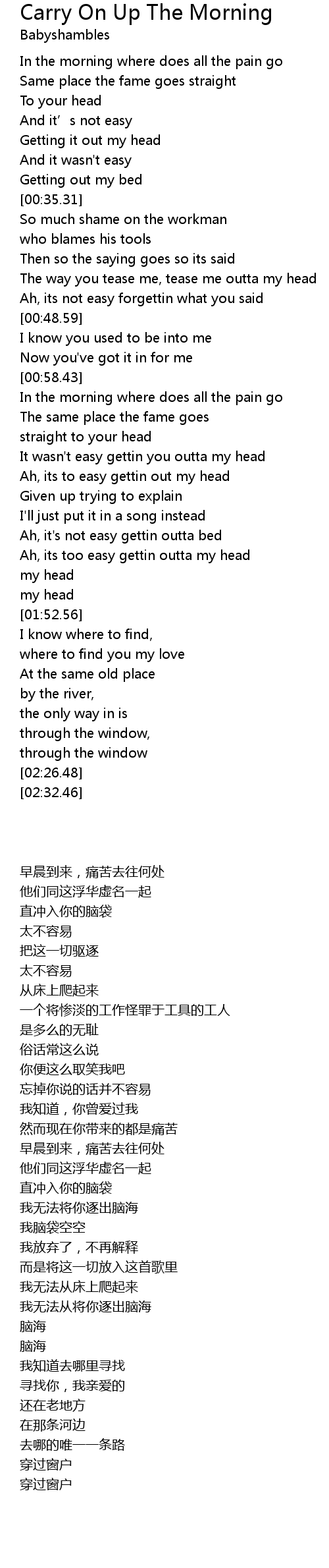 | [00:22.34] | In the morning where does all the pain go |