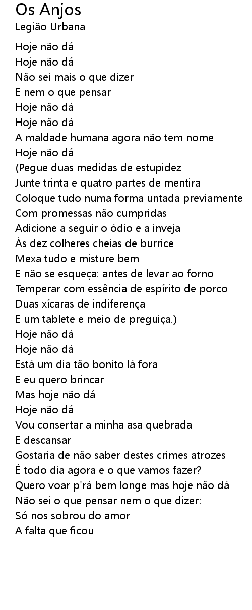 | Quero voar p' ra bem longe mas hoje n o da | |