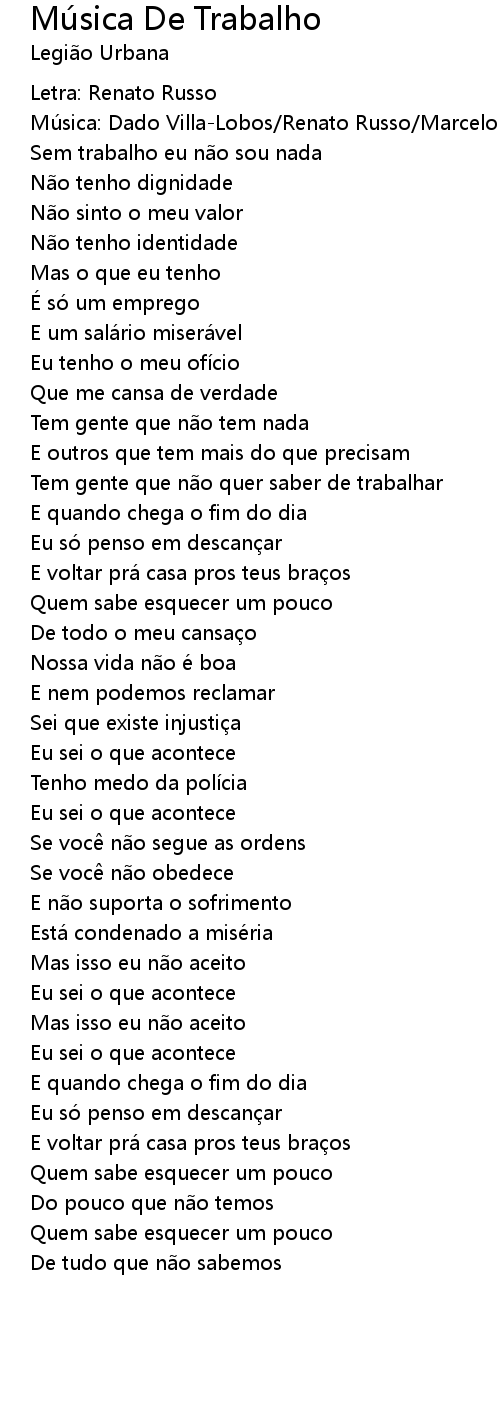 | Sem trabalho eu n o sou nada | |
