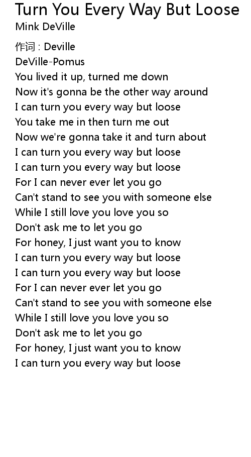 | I can turn you every way but loose | |