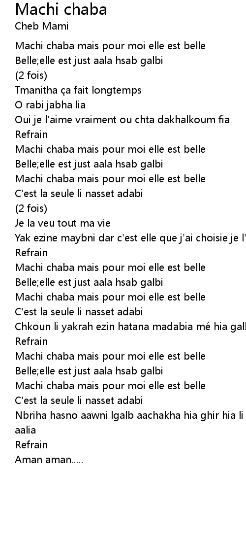 | Oui je l' aime vraiment ou chta dakhalkoum fia | |