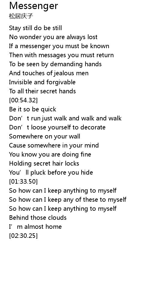| [00:34.70] | If a messenger you must be known |