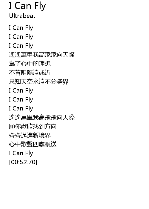| [00:33.30] | 遙遙萬里我高飛飛向天際 |