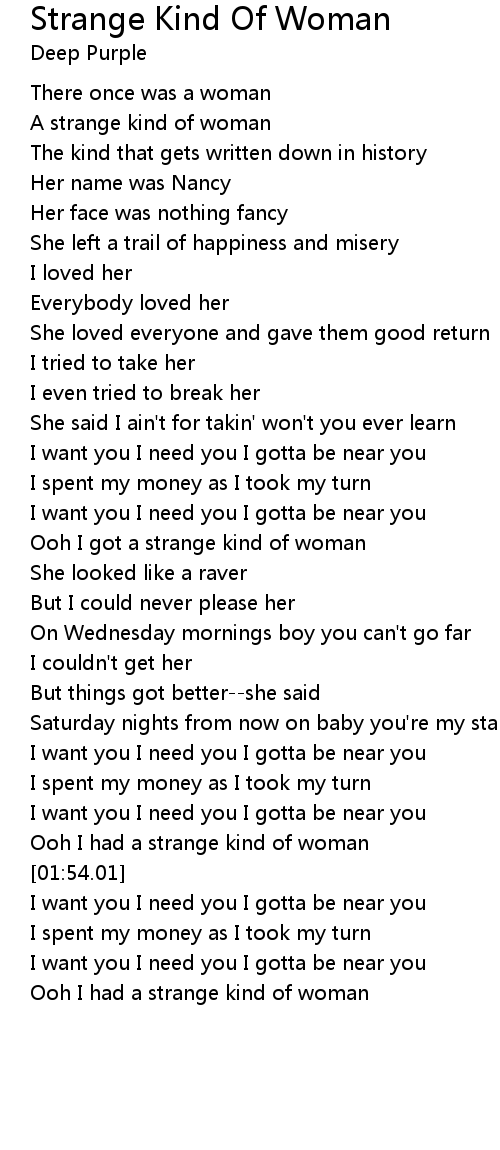 Ooh I had a strange kind of woman |