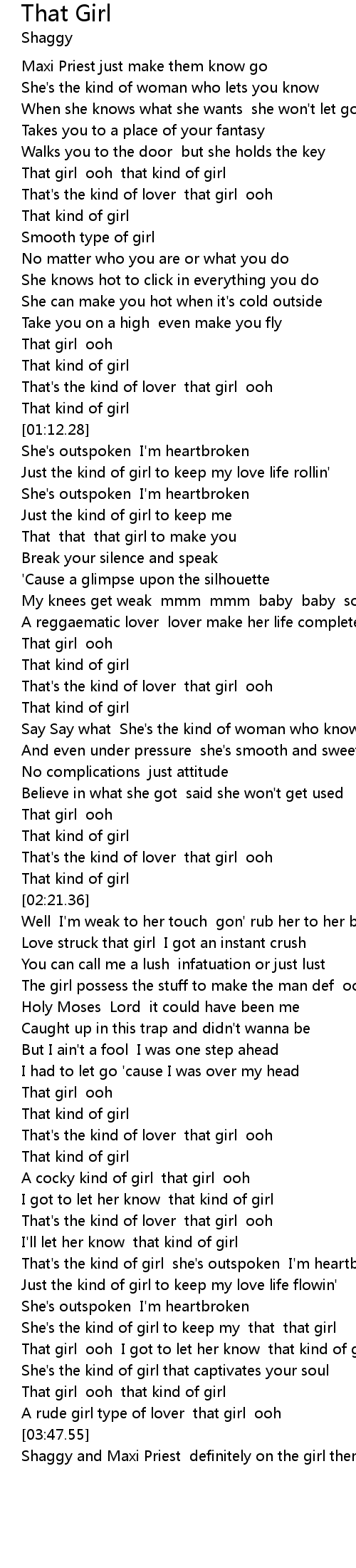 | [03:49.77] | Shaggy and Maxi Priest definitely on the girl them case |