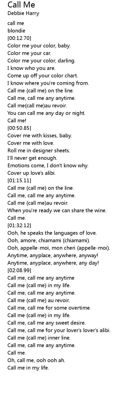 Call me, call me any anytime |
