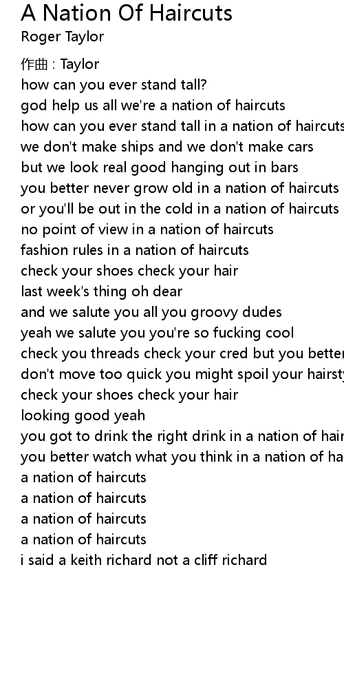| or you' ll be out in the cold in a nation of haircuts | |