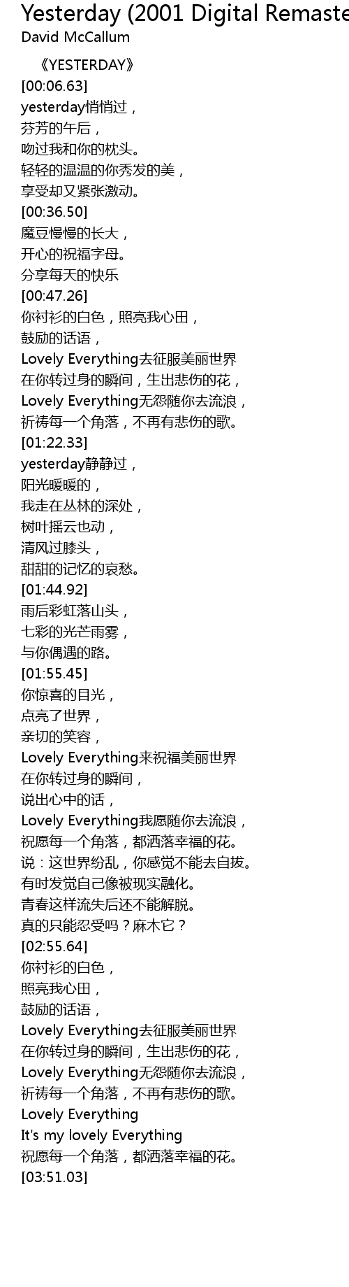 | [03:26.83] | Lovely Everything无怨随你去流浪, |