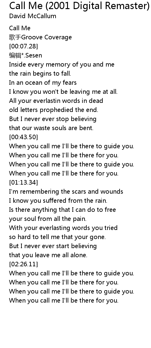 | [02:39.74] | When you call me I'll be there to guide you. |