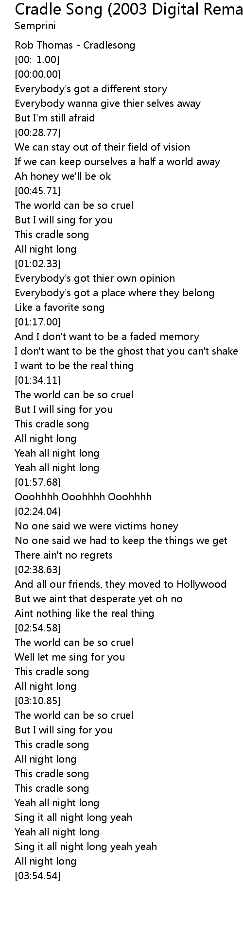 | [00:-2.00] | Rob Thomas - Cradlesong |